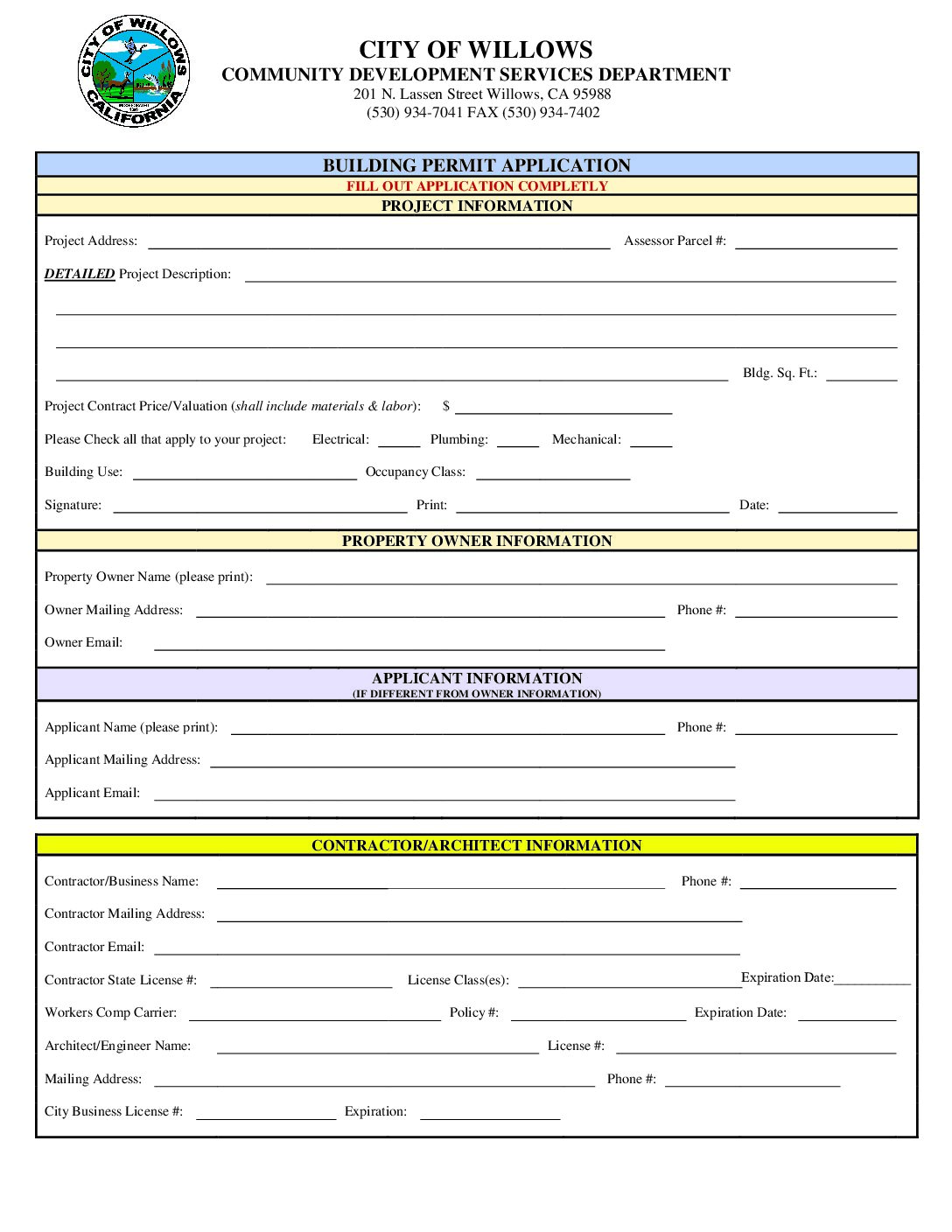 | Building Permit Application | Building Division, Community Development & Services | ||